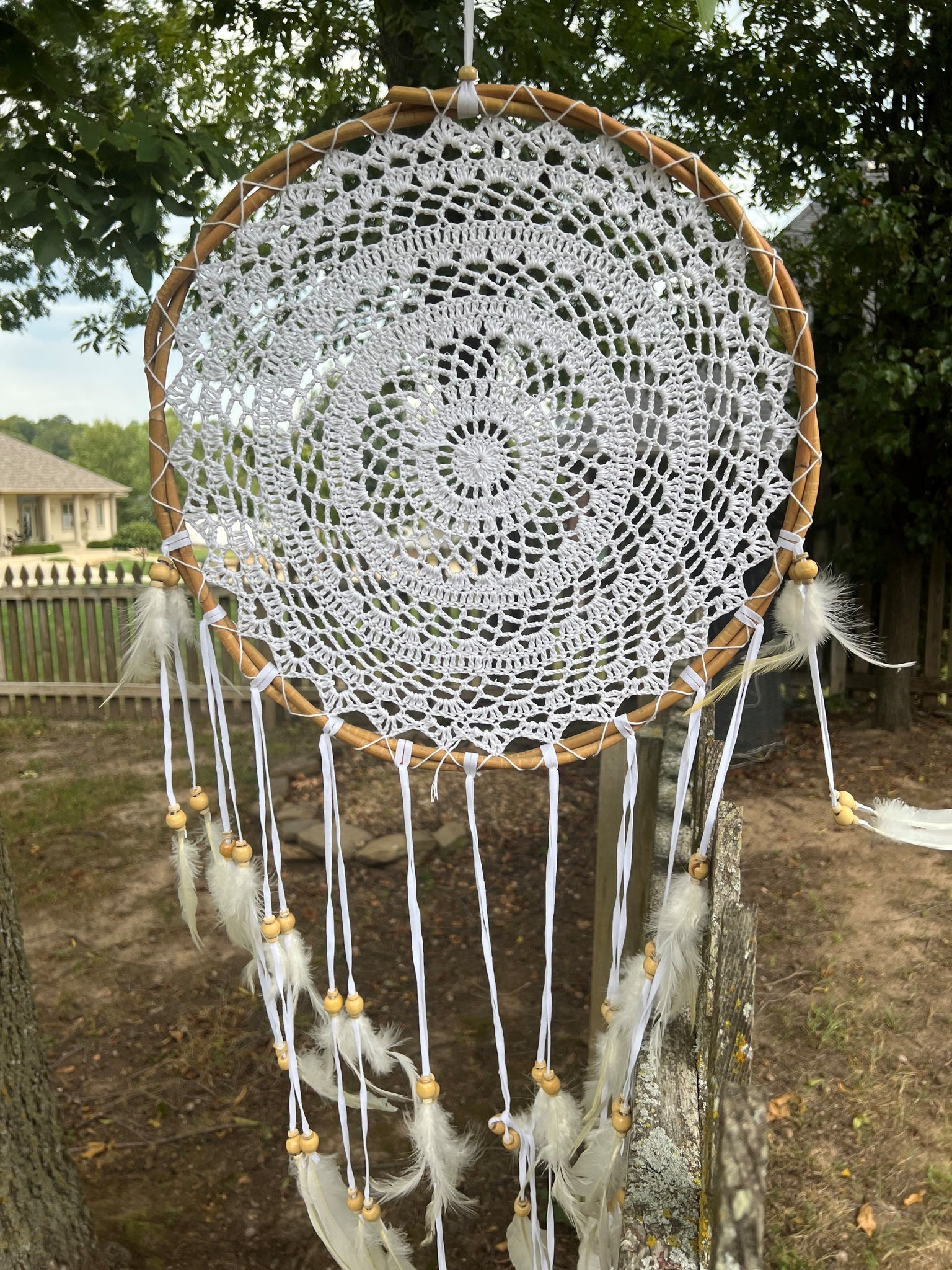 • Beautiful Dreamcatcher Rattan crochet featuring a delicate and intricate design.