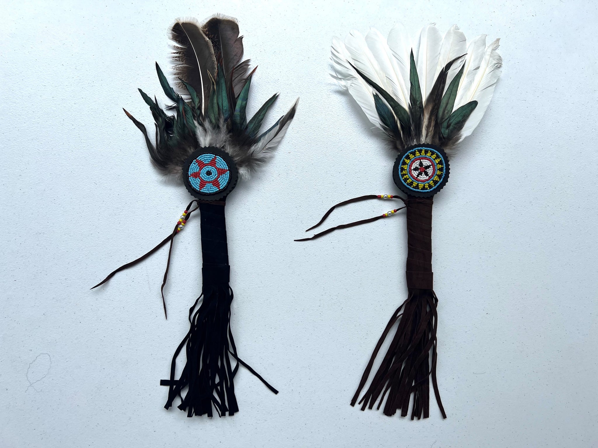 Handmade Native American Feather Fan - Elegant Prayer Accessory in Brown or White